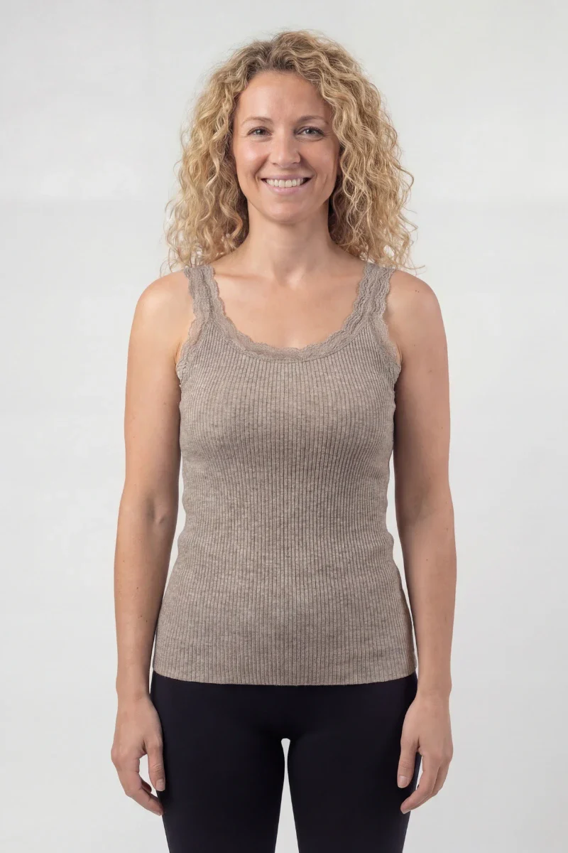 La canotta con pizzo spalla larga in lana seta da donna WearMe è un capo intimo confortevole e raffinato.