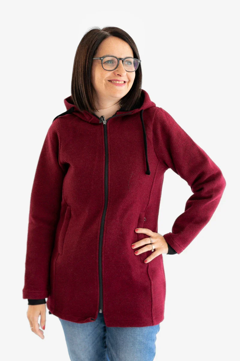 Il capo ha vestibilità asciutta ed in figura e garantisce un'ottima vestibilità con e senza inserto, adattandosi bene alle forme femminili e a quelle del bimbo quando viene portato.
