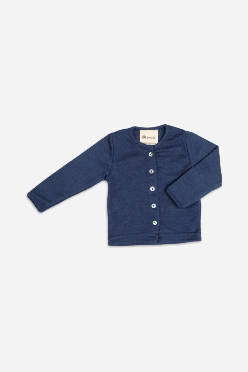 Cardigan per neonato e neonata, tessuto a maglia rasata in lana e seta. Perfetto per l'inverno, le mezze stagioni e le serate più fresche d'estate.